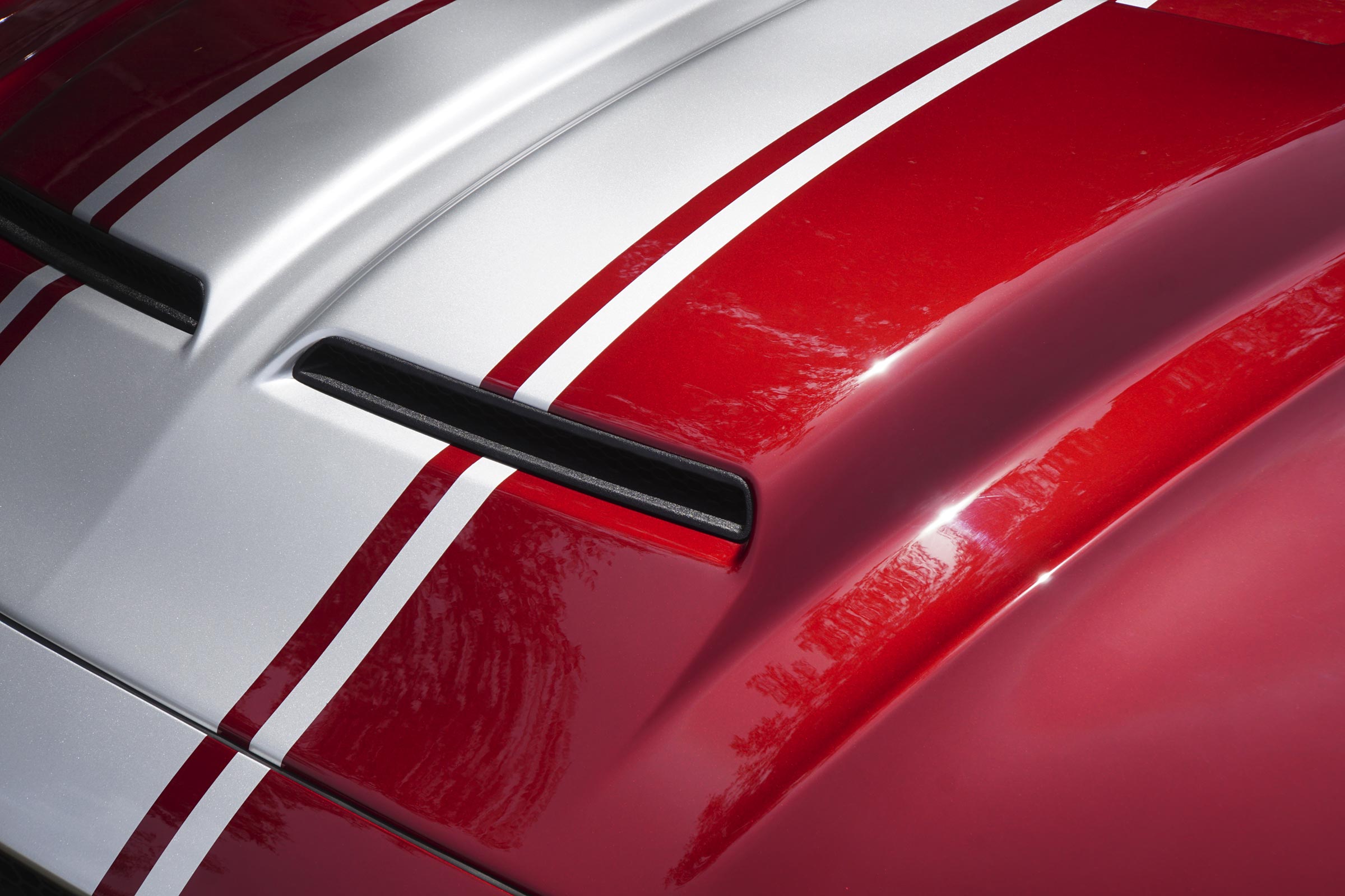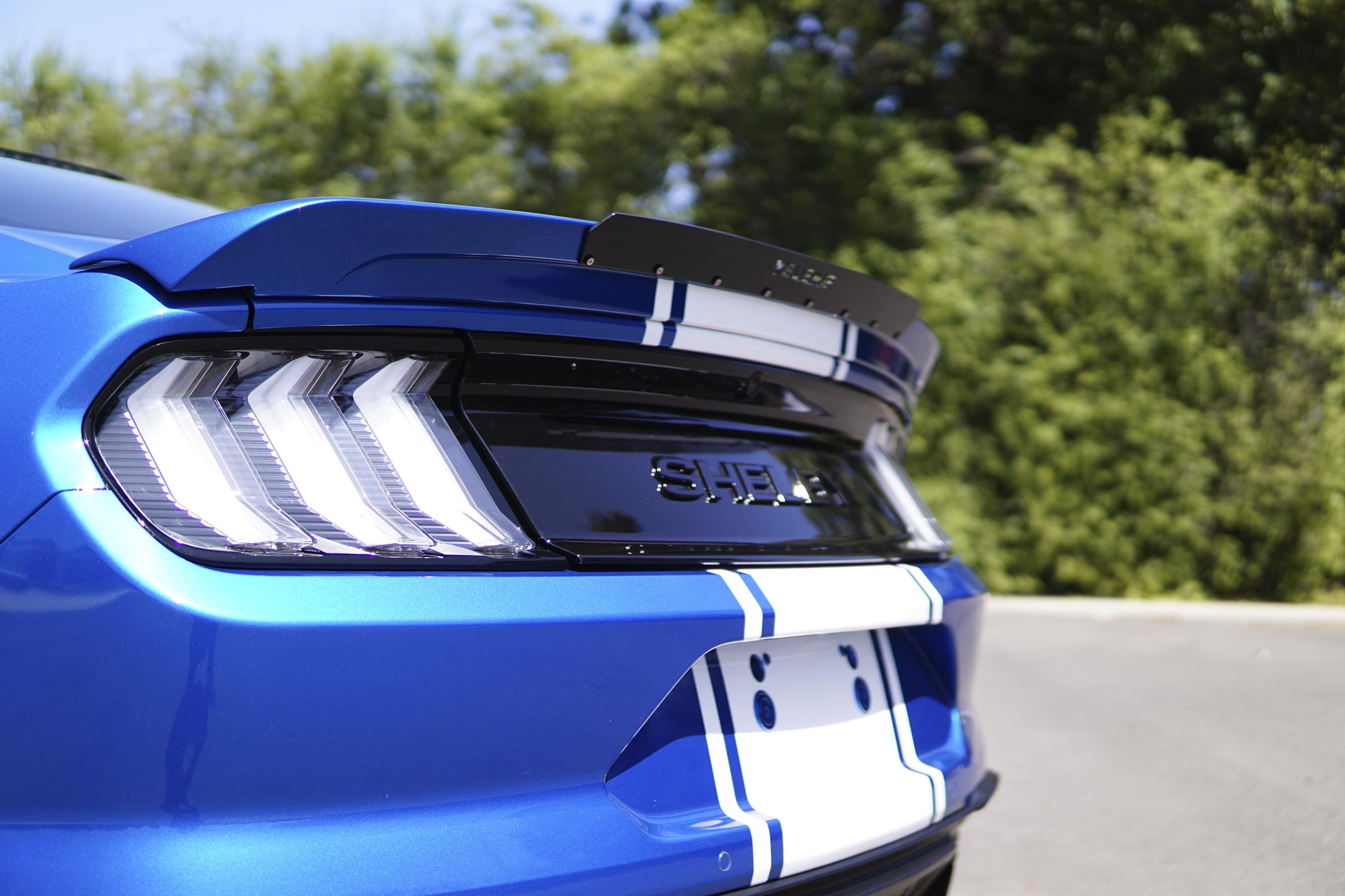 - SHELBY Super Snake Body upgrades: Functional Hood - Rockers with Winglets - Front facia with grilles, splitter and functional brake ducts - Upper and lower Diffuser - Rear spoiler with wicker bill -