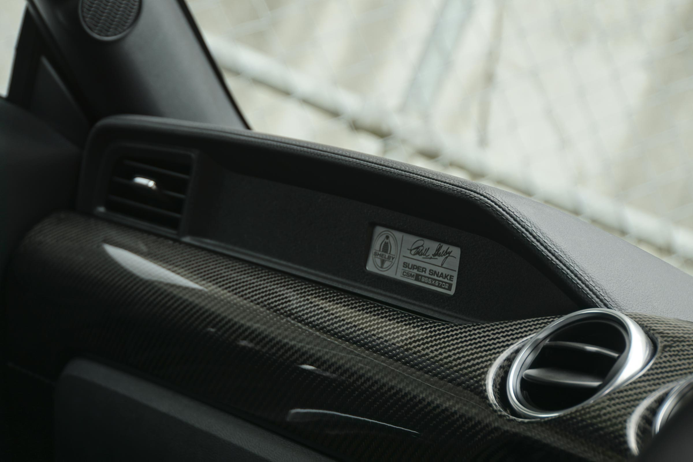 In keeping with the high performance characteristics of the Super Snake, a specific interior standard with the Shelby seating upholstery upgrade. A Shelby designed multi-gauge cluster, with oil pressure, fuel pressure and boost gauges is mounted in the centre of the dash. They can easily be read without letting the driver's eyes stray from the road.