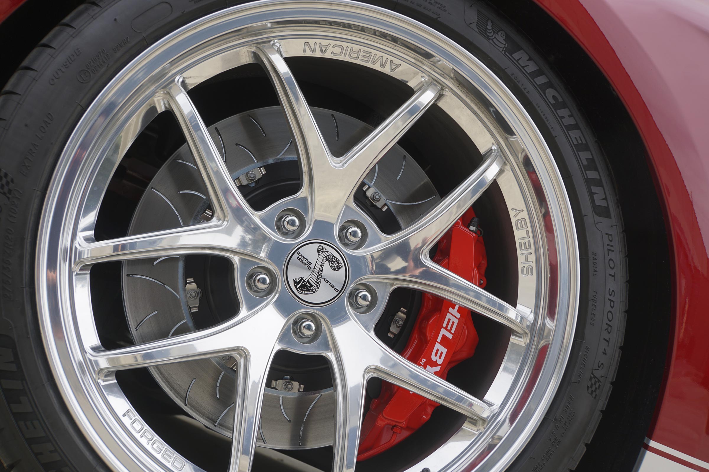 - WIDEBODY PACK: Shelby Front Fenders with Cooling Ducts - Shelby Rocker panels with winglets - Shelby Rear Fenders - Shelby Custom Hub and Wheel Bearings - Shelby Custom Suspension arms - 20x11 and 20x12.5 Forged Deep Dish Wheels (exclusive to the Widebody edition) - 305/30R20 & 345/30R20 Michelin Pilot Sport 4S tyres - Widebody Edition Brembo Brakes - Available with or without painted over-the-top stripes